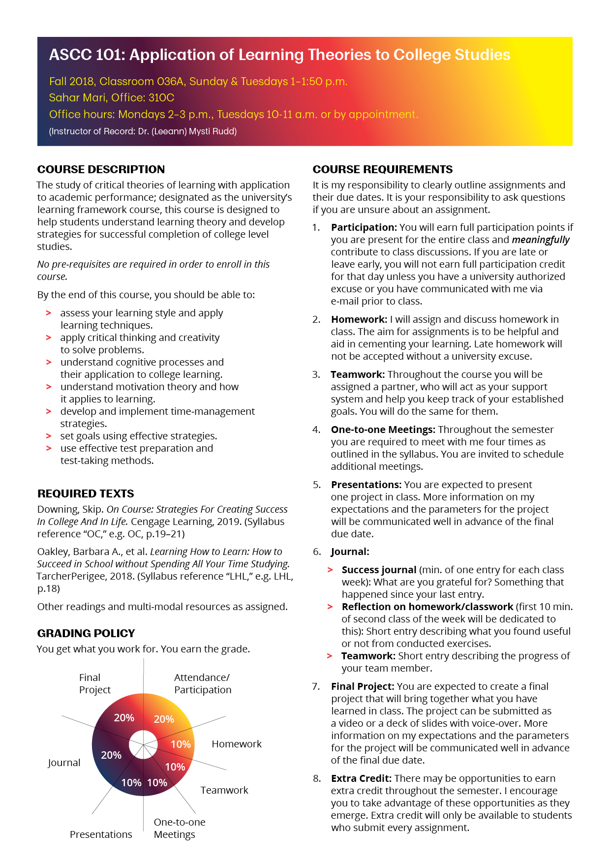 Fall 2018 (21 students), Fall 2019 (13 students)